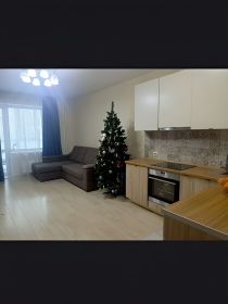 Продается квартира-студия общей площадью 37,9 кв.м.Квартира меблированная, остается все как на фотографиях (мебель и техника, на кухне так же имеется встроенная стиральная машина), забираем только телевизор и ковер. Окна выходят во двор. Соседи на этаже хорошие: тихие, спокойные, семейные. В доме есть подземная платная охраняемая парковка, но и по периметру дома всегда можно найти парковочное место. В шаговой доступности большой выбор продуктовых магазинов, пункты выдачи, аптеки, студии красоты.Рядом детский сад, школа, остановка.В квартире никто не прописан, один собственник.
