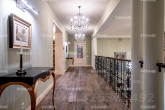 ID: 23004Домовладение в Летовой Роще с эстетикой британской классики находится всего в 8 км по Киевскому шоссе от МКАД. Как загородная резиденция в графствах Суррей или Беркшир, дом впечатляет кирпичными фасадами, арочными окнами и аккуратными садовыми аллеями с брусчаткой и водными элементами. На участке со взрослыми деревьями расположено 820 м ''под ключ'': меблированное домовладение со всей необходимой техникой и эксклюзивной дизайнерской отделкой. Транспортная доступность и инфраструктура посёлка обеспечивают комфорт ежедневной жизни.Первый этаж встречает пространством в духе британской гостеприимности: парадная гостиная с двойной высотой и симметричной компоновкой, акцентирована люстрами и светильниками Schonbek. Камин XVI-XVII века, привезённый специально, стал сердцем гостиной и символом преемственности эпох. Здесь - текстуры глубоких тонов, натуральное дерево и уравновешенные композиции мебели Ralph Lauren, поддержанные библиотекой в классическом исполнении. В зоне приема - столовая и кухня Century: длинный стол для торжественных ужинов, витрины и современная кухня с чёрным мрамором и характерной шахматной плиткой пола - как дань английским таунхаусам. Для отделки использовались кирпич и полы из Бельгии: кирпич XVIII-XIX века ручной формовки, использовавшийся в строительстве усадеб, конюшен и церквей, отличается высокой прочностью и исторической фактурой. Полы выполнены из старых дубовых досок массива возрастом около 100 лет, что делает интерьер более роскошным и статусным, наполняя его тёплой и уютной атмосферой. Кабинет и домашний кинотеатр оформлены Baxter - статусный уют, кожа и мягкие линии. Входная зона с тёмно-синими дверями, круглым пуфом и большим зеркалом настраивает на респектабельный тон. На уровне - зимний сад и терраса для неспешного чая, предусмотрены санузлы и отдельная квартира для персонала. Вас встречает второй этаж, на котором приватные пространства выдержаны в светлых, спокойных тонах - как в лучших британских резиденциях. Четыре спальни оформлены мебелью Baker и Century: текстиль с флоральными мотивами, классические комоды, изголовья с мягкой обивкой и хрустальные акценты освещения. Семь санузлов в доме создают безупречную логику комфорта: здесь есть залы с мраморными стенами, двойными раковинами, орнаментальным полом и декоративными зеркалами, отдельные комнаты с душевыми и ванной, элементы чёрно-белой плитки - всё в духе изящной классики. В спальнях - продуманная медиазона с ТВ, рабочими столами и гардеробными. Просторный участок с крупными деревьями продолжает архитектурную идею дома: аккуратно подстриженные живые изгороди, цветники, мощёные дорожки и водные элементы создают атмосферу ухоженного английского сада. Пруд органично вписан в композицию - он добавляет глубину пространству, отражает зелень и служит спокойным визуальным акцентом. Здесь можно устроить барбекю в тени деревьев, собраться с друзьями в беседке или просто наслаждаться видом на ландшафтные композиции с террасы. Помимо основного дома, на участке расположены банный домик с комнатой отдыха и отдельное строение с кухонной зоной, что делает территорию полностью готовой для комфортного загородного образа жизни.Посёлок Летова Роща - охраняемая территория с продуманной инфраструктурой: въездная группа, внутренние дороги, сервисы и близость к 