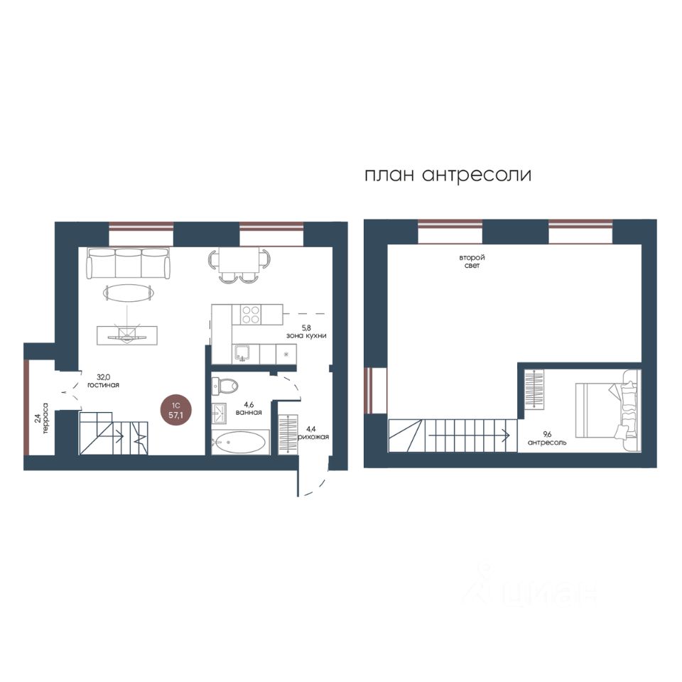 Общая площадь57,1 м2