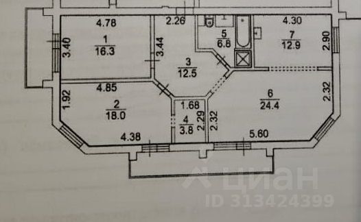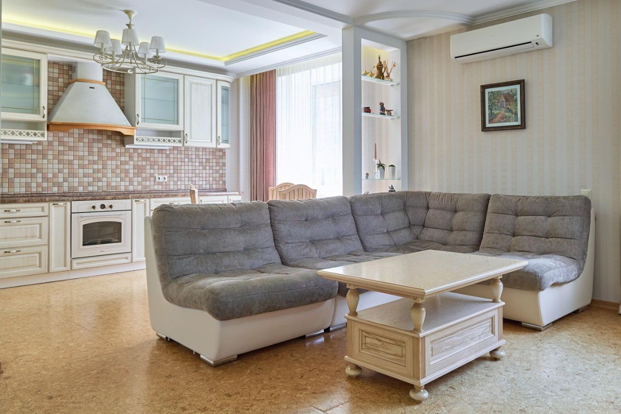 Кухня-гостиная + 2 отдельные комнаты, просторный сан. узел с ванной и душевой кабиной, отдельная гардеробная комната.