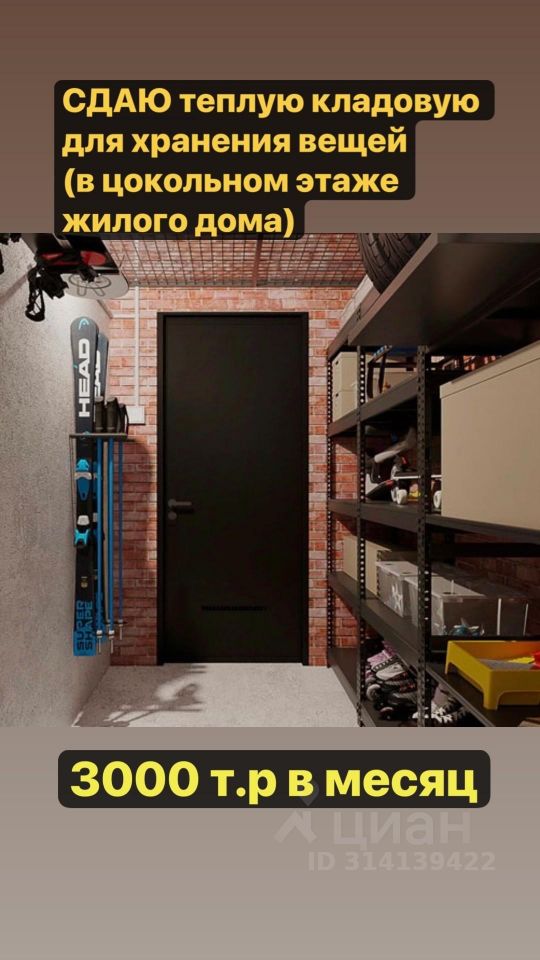 Сдается в аренду отапливаемое кладовое помещение. Идеально подходит для хранения личных вещей (велосипеды, коляски, автошины и мн. другое), что поможет Вам освободить пространство в квартире/ на балконе, а также хранение товаров, оборудования, документов для Вашего бизнеса, включая продукцию для маркетплейсов.