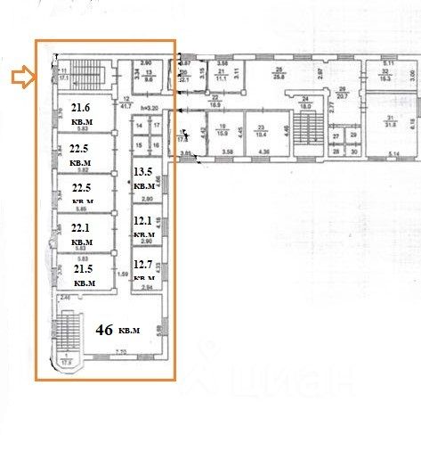 Сдам нежилое (офисное) помещение в административном здании, площадью 46 кв.м с отдельный входом, есть запасный (пожарный) выход. Близость остановки, отличная транспортная доступность. Свежий ремонт, высокоскоростной интернет, кабинетная система, высокий пешеходный и автомобильный трафик, транспортная доступность в любую точку города. На плане обозначены свободные помещения от 21.5 кв.м.