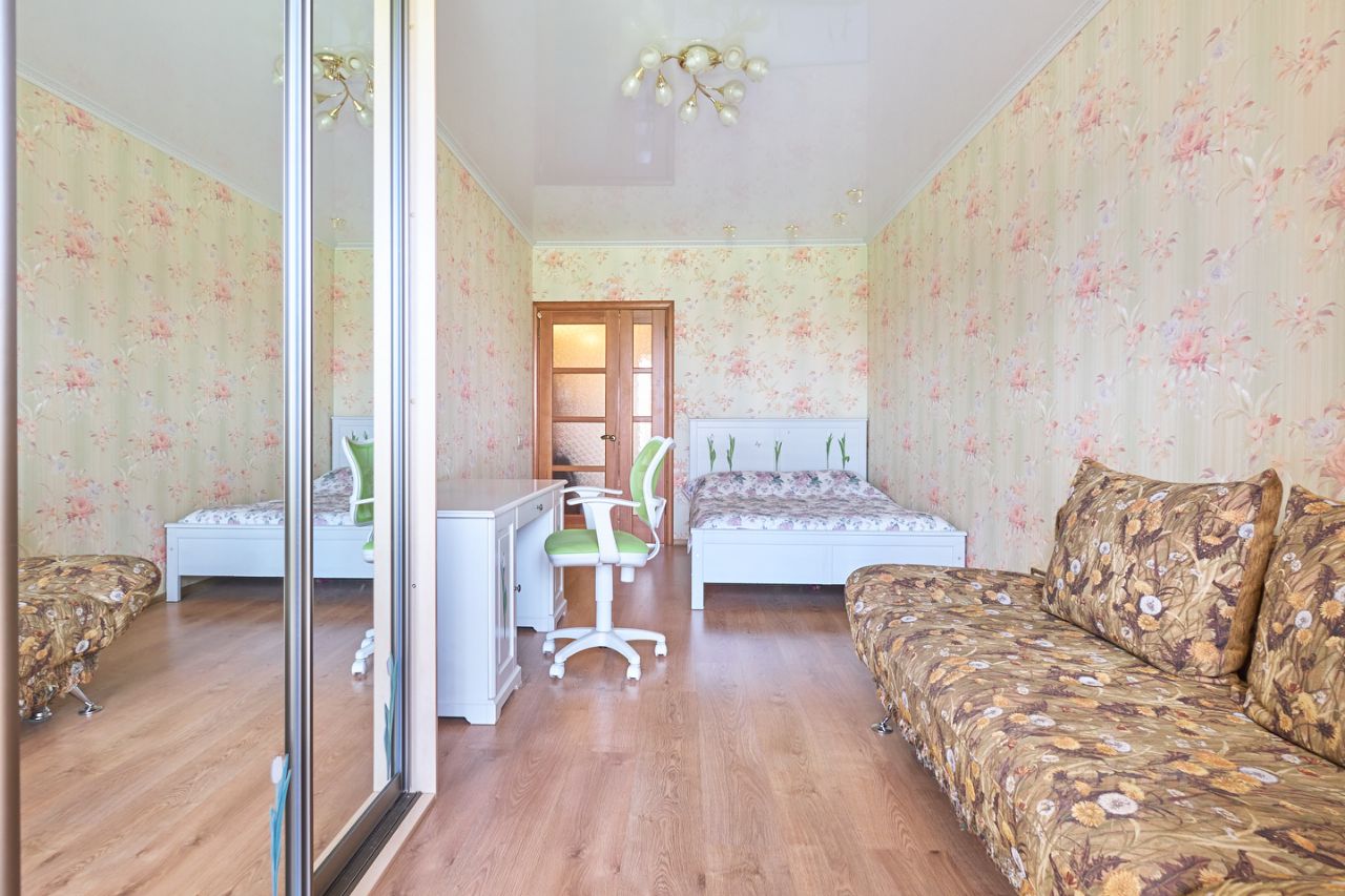 Почему здесь захочется остаться: Стадион ''Локомотив'' за окном — зелёная зона с тренажёрами, детской площадкой и крытым спортзалом. Вид на динамичную жизнь, но без шума: 5-камерные окна с защитой от ультрафиолета. Два входа — с 5-го и 6-го этажей. Гости могут подняться отдельно, не тревожа приватность второго уровня. Ремонт для тех, кто ценит детали — износостойкий ламинат, кафель до потолка в санузлах, натуральное дерево на подоконниках, гардеробные с зеркальными дверями. Технологии комфорта — домашний кинотеатр с 4-точечным звуком, теплые полы на лоджиях и в коридоре, инфракрасные обогреватели, сигнализация и видео-глазок с фиксацией. Спа-зона в вашем доме — сауна и джакузи с мозаичной отделкой и окном. После сауны — на диван в гостиной, где звук кинотеатра обволакивает со всех сторон.