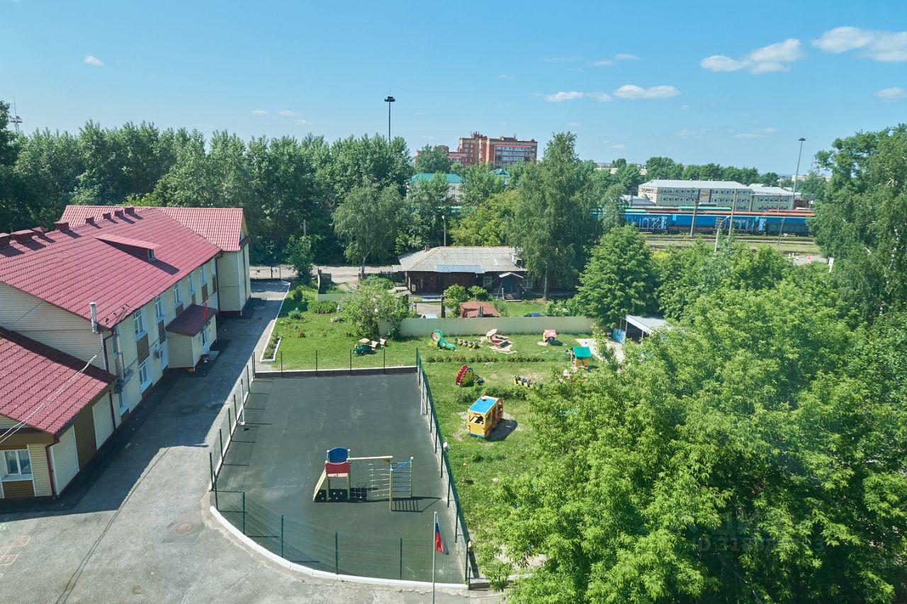 С гостиной открывается вид на детский сад Железнодорожник — один из лучших в городе. В садике есть бассейн и небольшие группы, попасть туда хотят многие. А этот дом относится к садику по прописке — огромный плюс для семей с детьми!