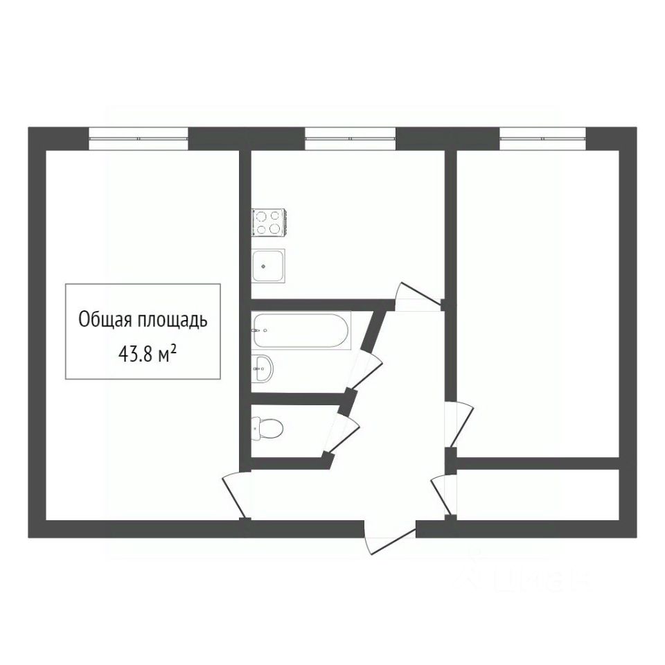 Две отдельные комнаты и кухня, раздельный санузел - удобный вариант для семьи.