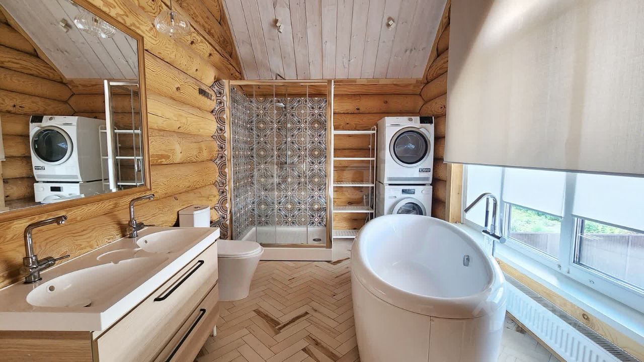 Ваша новая готовая резиденция в уютном красивом месте на берегу реки, желаете? Представляем вашему вниманию уникальную усадьбу, расположенную в живописных окрестностях села Калтай, в СНТ ''Береговое'' Дорога от города занимает всего всего 20 минут. Участок площадью 28 соток полностью благоустроен: дорожки из натурального камня, ухоженный газон с автоматическим поливом и системой отвода воды, детская спортивная площадка, место под батут и каркасный уличный бассейн. Автоматические ворота. Вдоль высокого берега высажены красивые лиственницы, украшающие и без того удивительной красоты вид на реку. Строения и наполнение: Усадьба состоит из четырех капитальных зданий: основного дома 435 м2, бани 71м2, гаража 92м2 и беседки 31м2. Все строения введены в эксплуатацию в 2017г., прошли процессы естественной усадки и не требуют никаких вложений. Общая площадь строений 630м2. Газовое отопление всех ключевых помещений. Главный дом: Выполнен из редкого оцилиндрованного бревна (сосна) диаметром 32 см в стиле ''русского модерна''. Он не только выглядит эффектно, но и обеспечивает тепло и уют. На первом этаже находятся просторная гостиная с камином от La Nordica (Италия), современная кухня с итальянским гарнитуром Aran, гостевая спальня и туалетная комната с душевой. На втором этаже расположены три спальни, туалетная комната с отдельно стоящей ванной и просторной душевой кабиной. Третий этаж - большая комната свободного назначения. Вся мебель в стиле ''Прованс'' остается новым собственникам. Баня и беседка: Отдельно стоящая баня из оцилиндрованного кедра диаметром 28 см оборудована круглогодичным бассейном с противотоком. Комната отдыха вмещает 10-12 человек и оснащена туалетной комнатой и приточно-вытяжной вентиляцией. Панорамные окна позволяют наслаждаться видами на реку как из комнаты отдыха, так и из бассейна. Баня может использоваться как гостевой дом. Беседка, рассчитанная на большую компанию, выполнена из оцилиндрованной сосны диаметром 32 см и оснащена французскими панорамными окнами с видом на реку. Здесь также имеется функциональная кухня и водоснабжение. Гараж: Отдельно стоящий гараж с электрическими воротами вмещает несколько автомобилей и предоставляет место для хранения инвентаря и садовой техники. В гараже расположена комната технологии с системой водоочистки, насосным оборудованием и генератором. Интересно? звоните! Ответим на любые вопросы, договоримся на просмотр Вашего будущего дома)