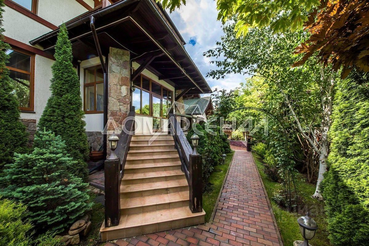 Участок. На участке выполнен ландшафтный дизайн: многоконтурный дренаж, прогулочные дорожки вымощены из натурального камня, высажены взрослые лесные и декоративные деревья, кустарники, установлена система автополива, смонтировано освещение с автоматическим включением по датчику освещенности. На доме установлена новогодняя иллюминация. Просторная терраса с маркизой и уличной мебелью, детский городок, спортивная площадка, гараж на 2 м/м.