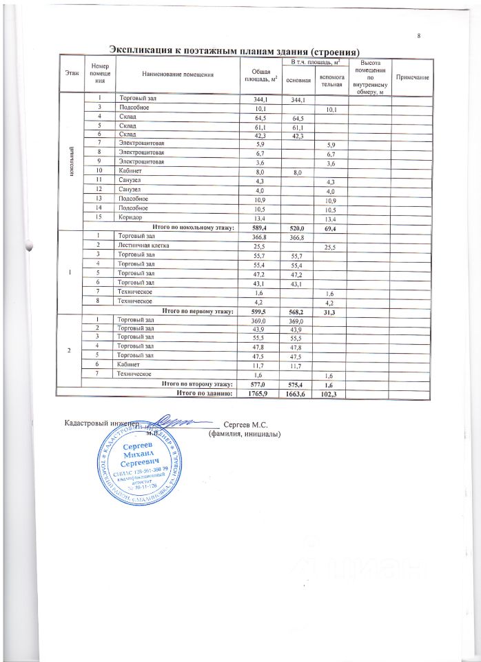Общая площадь 1765,9 кв.м.