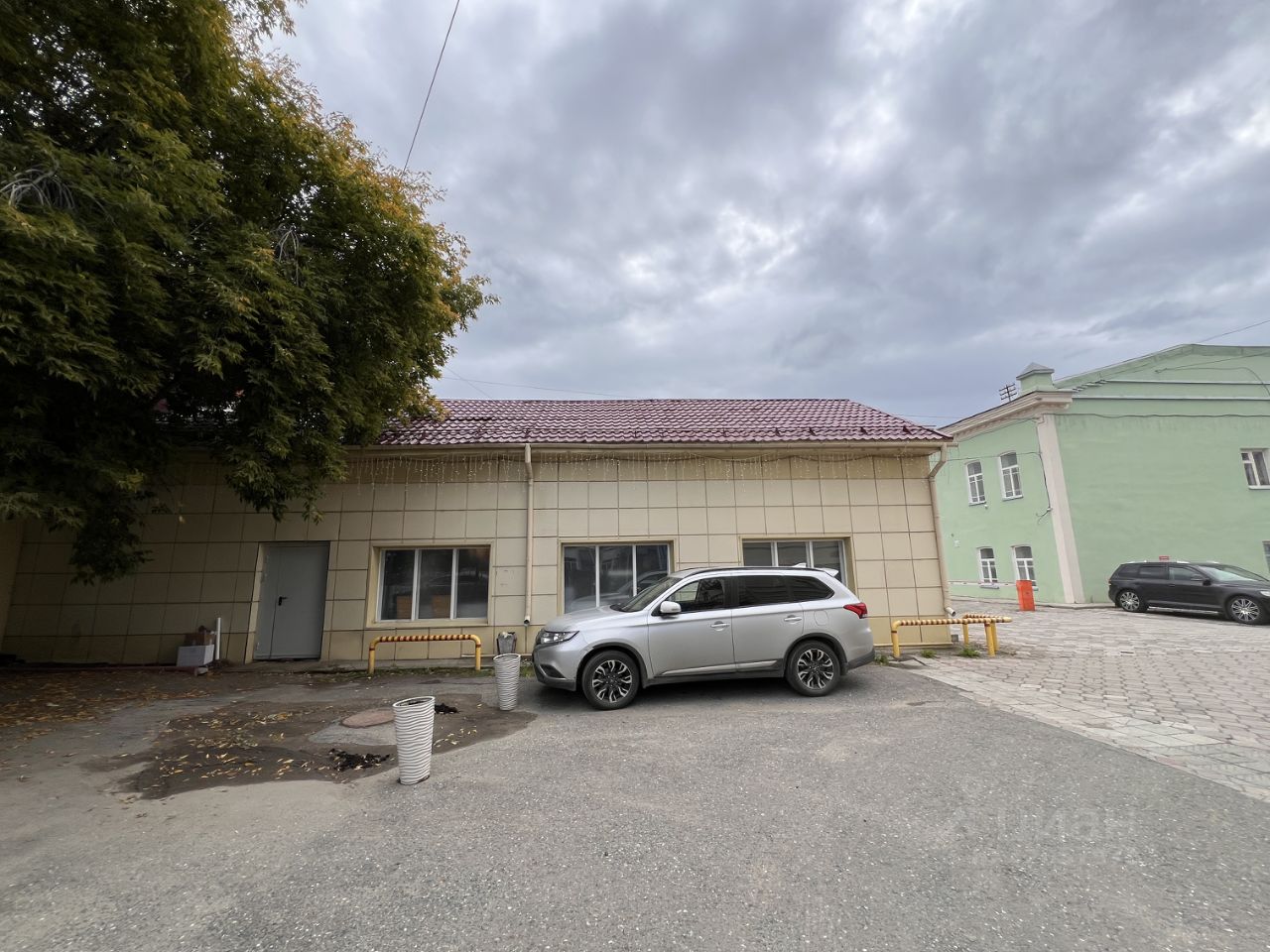 Полноценный цокольный этаж с высотой потолка 3 м. и небольшими окнами по всему периметру, пандусом для разгрузки.