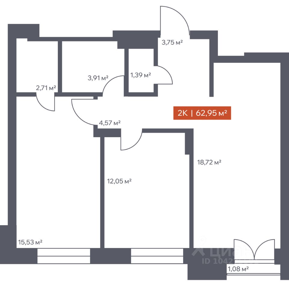 Общая площадь62,95 м2