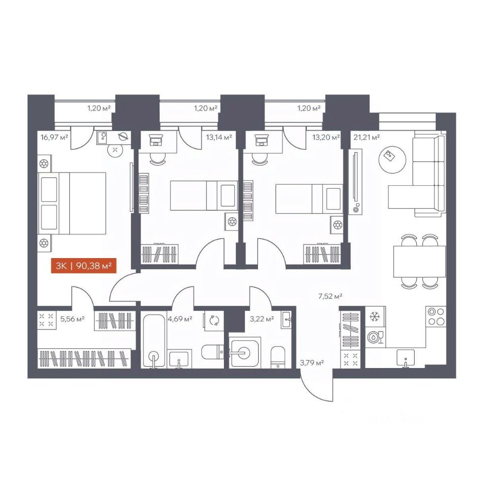 Общая площадь90,38 м2
