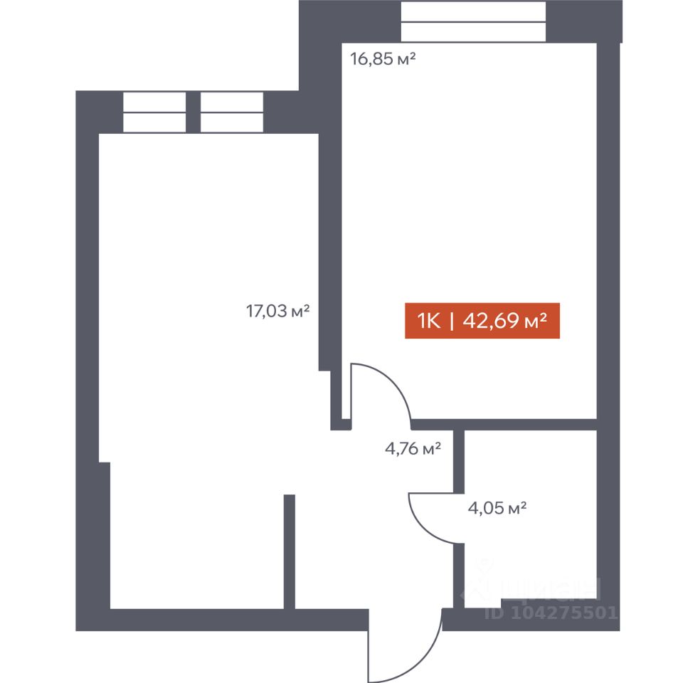 Общая площадь42,69 м2