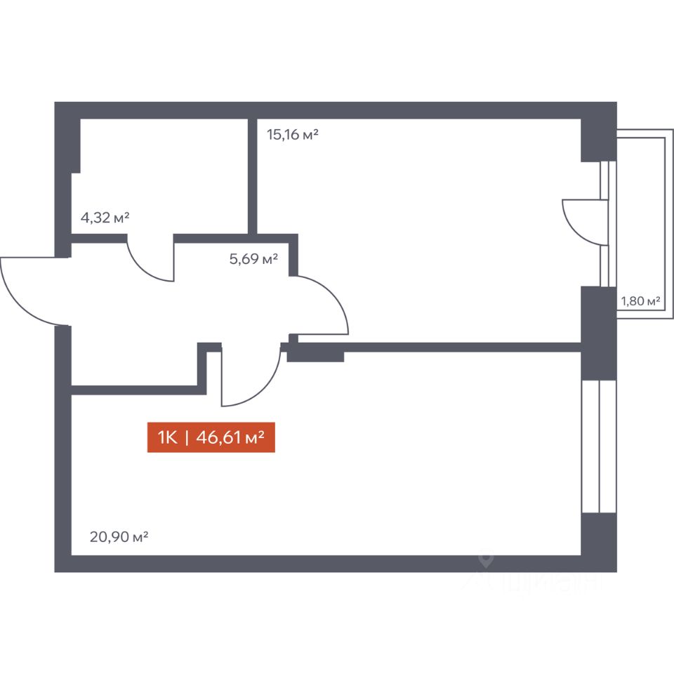 Общая площадь46,61 м2