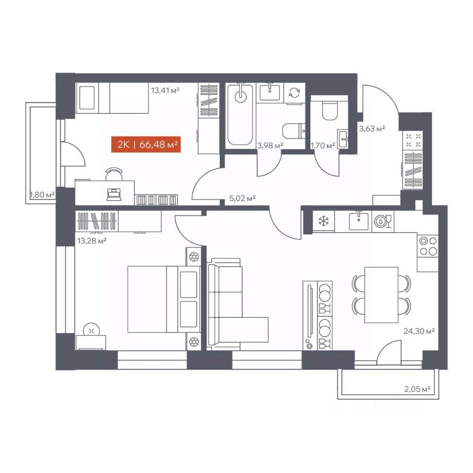 Общая площадь66,48 м2