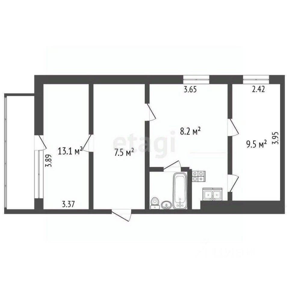 Общая площадь43,7 м2