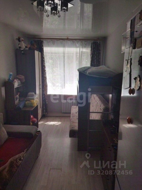 В комнате сделан хороший ремонт, сделана стяжка, на полу постелен ламинат, пластиковое окно, натяжной потолок, заменена электро-проводка.