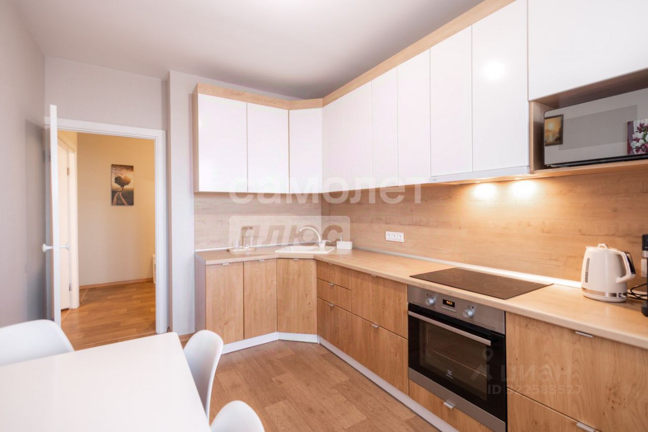 Общая площадь - 59,3м². Планировка, комфортная для проживания: - две комнаты по 20,19м² и 13,04м² - просторная кухня 10,9м² - застекленная просторная лоджия с местами хранения Высота потолков 2,7м На полу постелен качественный линолеум, керамическая плитка в раздельном санузле. Стены ровные, оклеены обоями светлых тонов. Качественные межкомнатные двери из МДФ. Стеклопакеты во всей квартире Кухонная мебель изготовлена в современном стиле с качественной встроенной техникой: духовой шкаф, варочная панель и вытяжка. Мебель в прихожей и комнатах сделана на заказ в едином стиле.