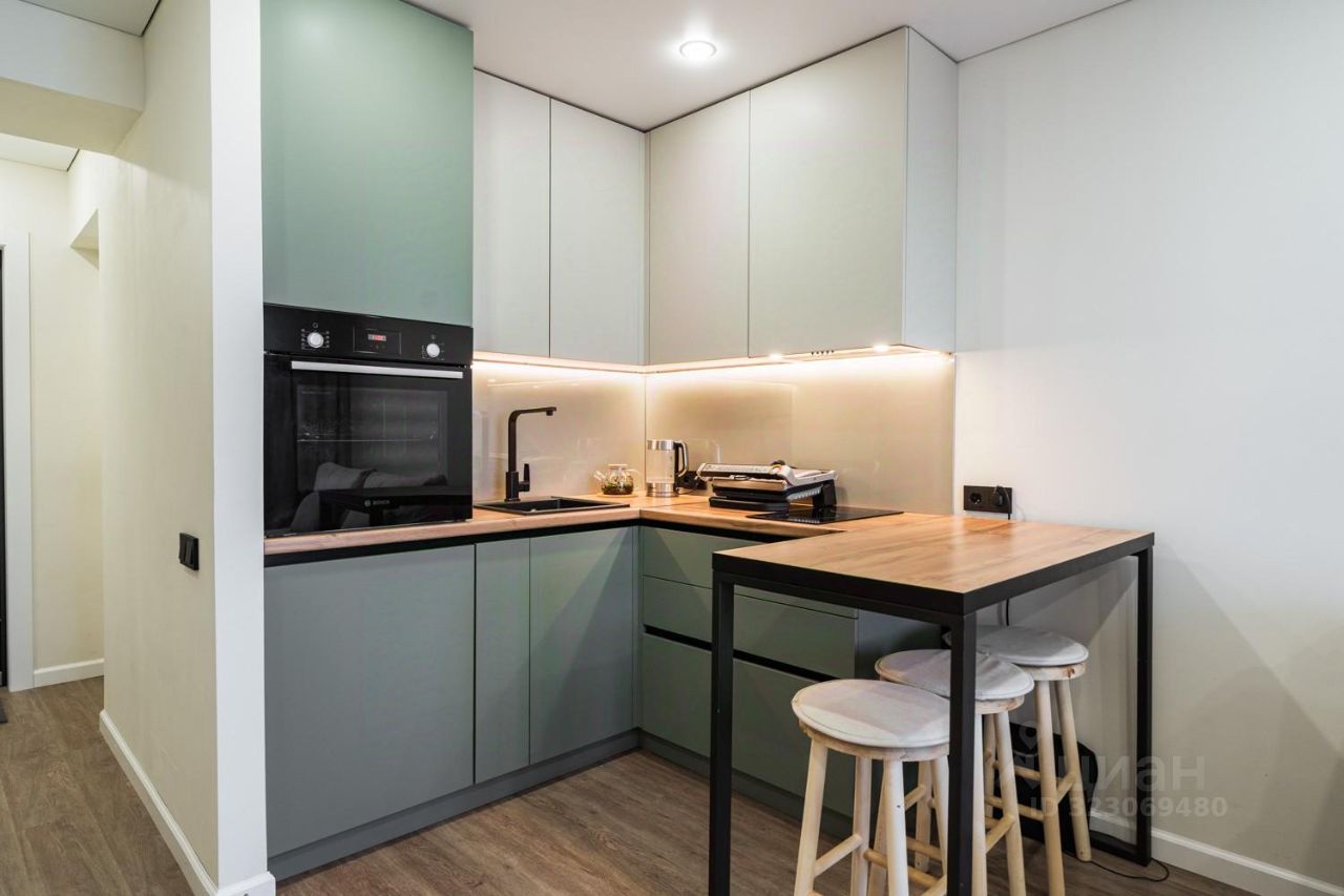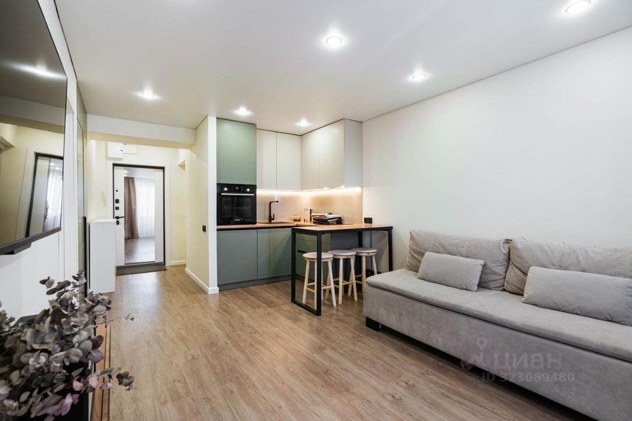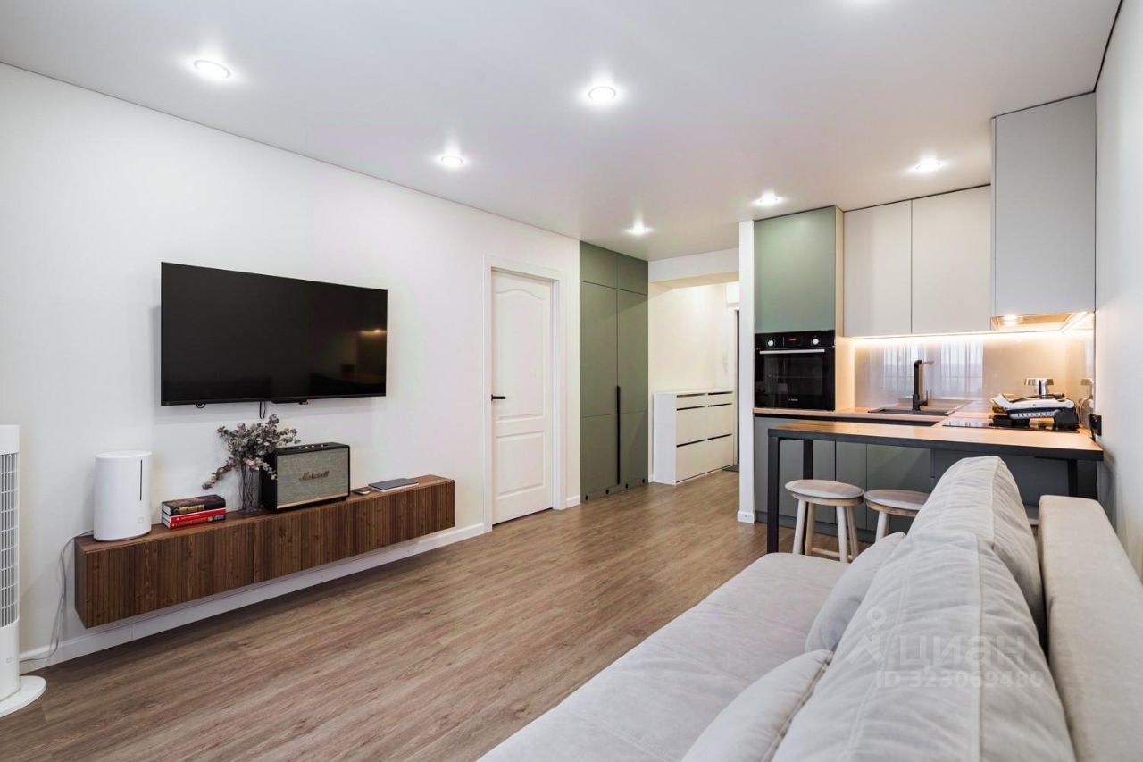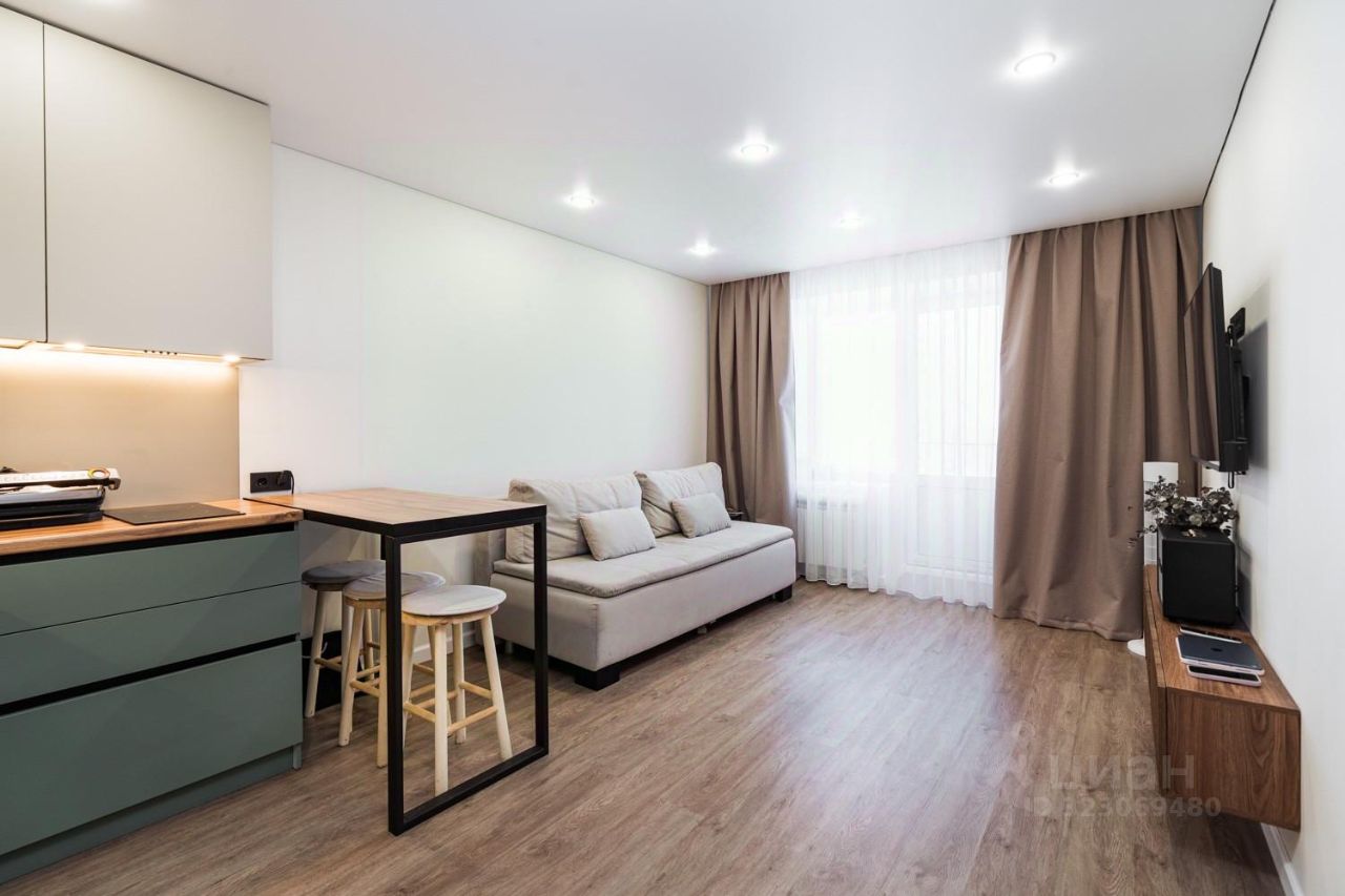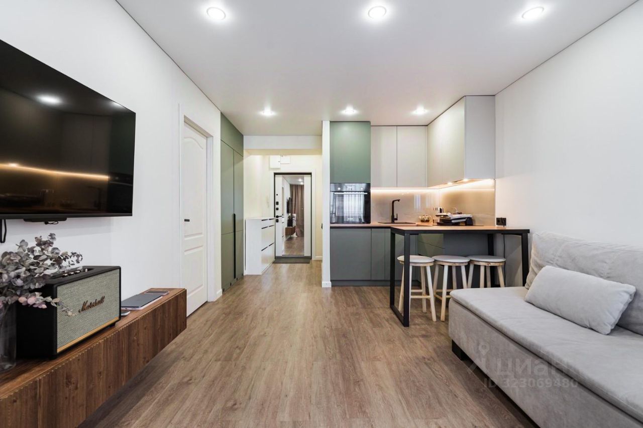 В продаже двухкомнатная студия со стильным дизайнерским ремонтом в кирпичном доме.