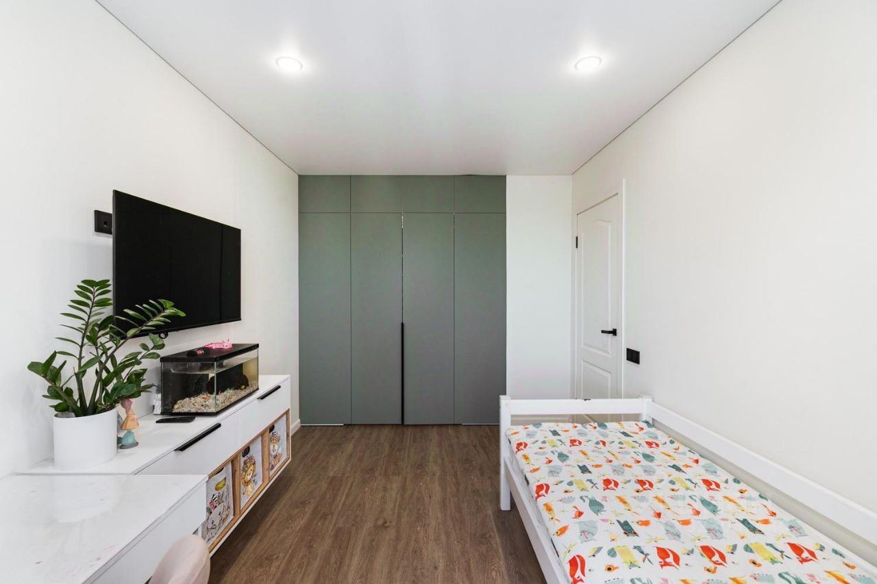 В квартире делался ремонт с нуля: заводилась новая разводка электрики, сантехники, выравнивались полы и стены, наращивались стены для эргономичной планировки, санузел в кафеле (под 45 углы) площадью 5,7 кв.м., стены покрыты флизелином и покрашены, пол кварц-винил, нужно оценить в живую эти качественные отделочные материалы. Мебель МДФ, под заказ, с доводчиками, большая гардеробная, встроенный холодильник Samsung, посудомоечная машина ВОSСН (на 60), духовой шкаф ВОSСН, варочная панель и вытяжка Маunfеld, водонагреватель - всё это остается новым собственникам!