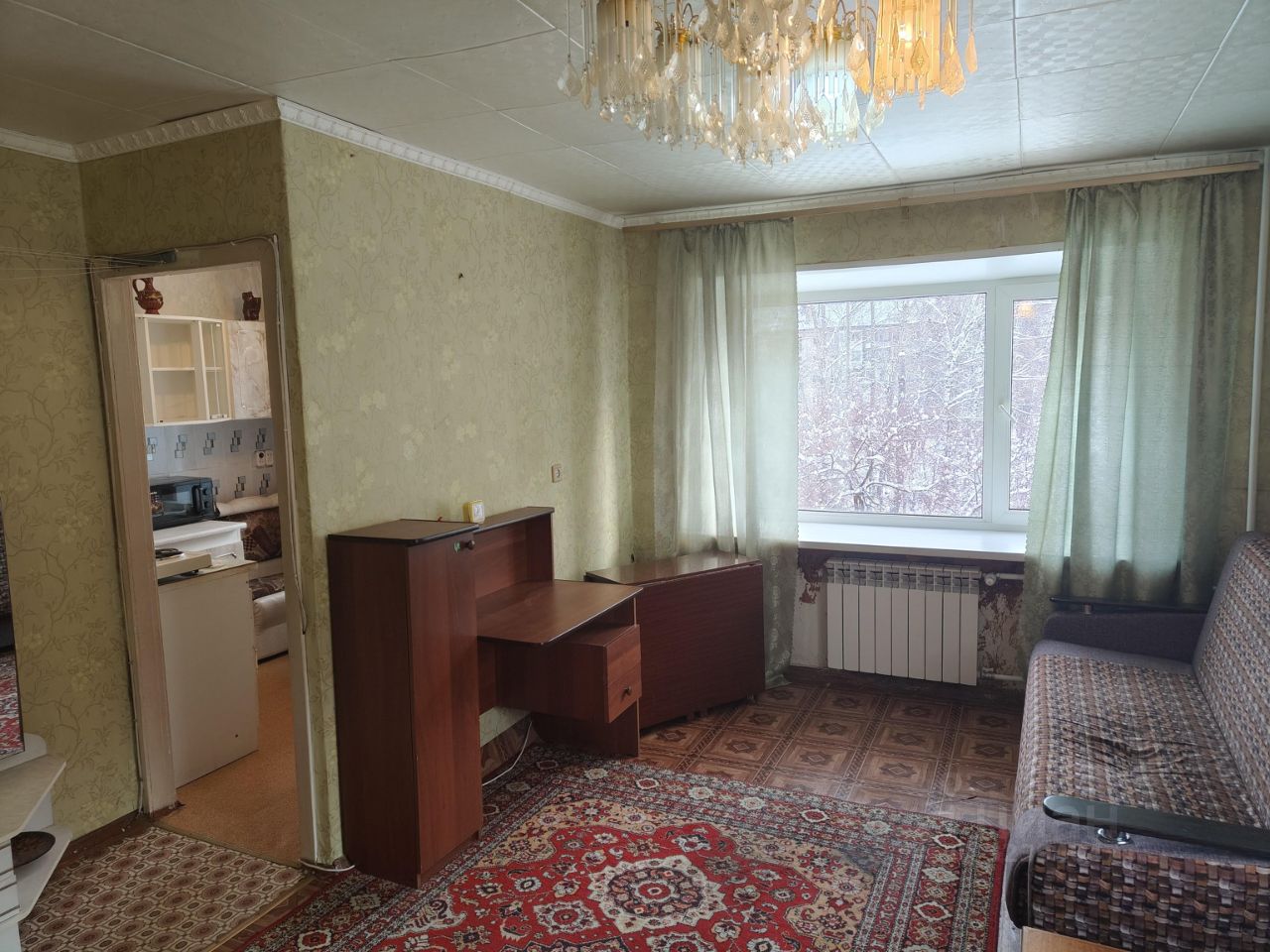 Окна пластик (во двор). Радиаторы аллюминивые. C/у - совместный. Есть стиральная машинка. Диван. Холодильник. Шкафы. Прихожая в коридоре. Кухонный гарнитур.