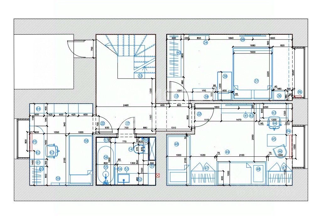Площадь 2 этажа 55 кв.м. с тремя отдельными спальнями и санузлом с ванной (теплый пол).