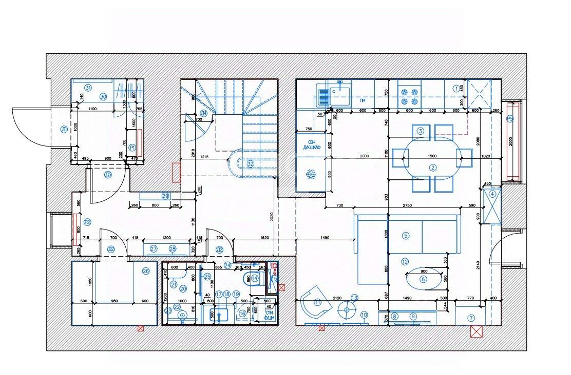 Общая площадь 1 этажа составляет 62 кв.м. включает в себя: Кухня-гостиная, санузел с душевой, просторная гардеробная, прихожая. Теплый водяной пол + внутрипольный конвектор. Также в дополнение к этому установлены радиаторы отопления.