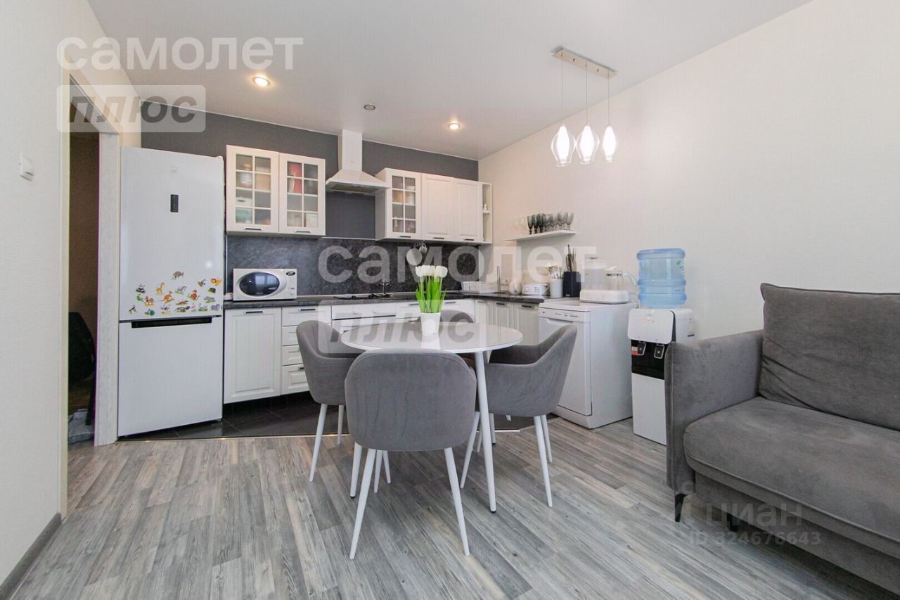 Описание: общая площадь 58,4 кв.м + лоджия (7,6 кв.м), кухня-студия - 20,2 кв. м, спальня - 12,5 кв. м и 10,5 кв.м, санузел раздельный, лоджия не застеклена, частично остаётся мебель и техника, евроремонт, пластиковые окна, на полу кафель/ламинат, стены - обои, натяжные потолки, в санузле кафель, качественная металлическая входная дверь, окна выходят на север и юг, соседи спокойные, взрослые, остановка в минуте ходьбы (маршруты 8,13,20,53).
