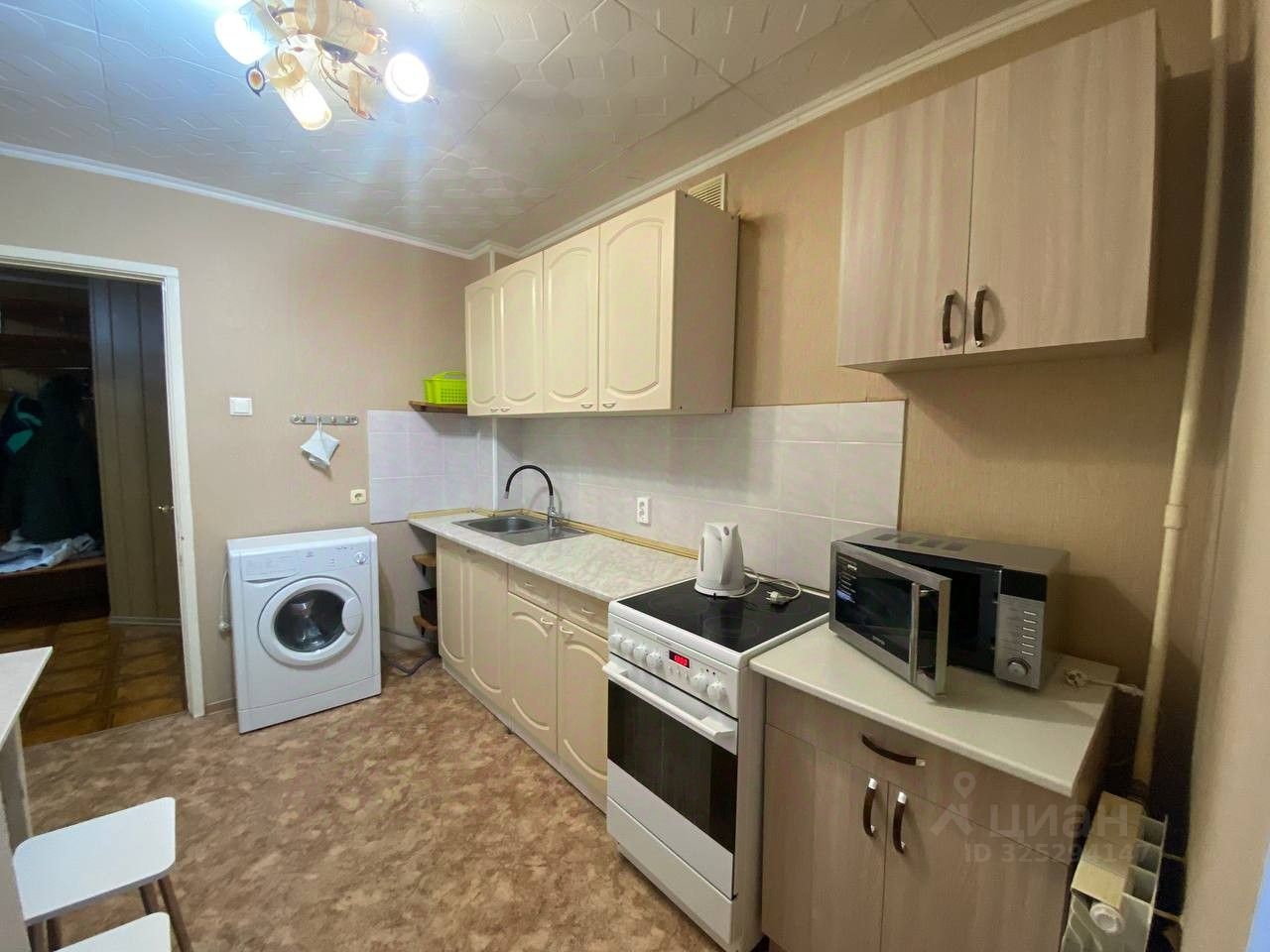 Есть базовый набор: холодильник, стиральная машина, микроволновая печь, 2 дивана, шкаф, кухонный гарнитур.