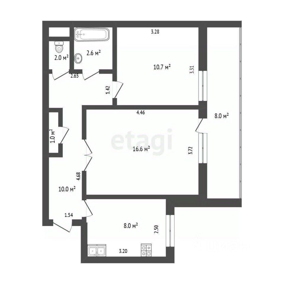 О КВАРТИРЕ: Площадь: 50 м²+лоджия 8м².