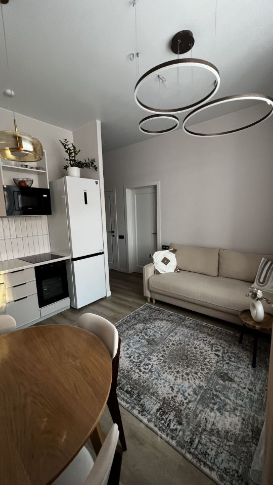 В квартире сделан дизайнерский ремонт, поэтому все детали интерьера продуманы до мелочей. Высокие потолки 2,9м, широкие подоконники. В наличии вся необходимая мебель, как на кухне, так и в комнате. Из техники есть холодильник, посудомоечная и стиральная машины, микроволновка, варочная панель, духовой шкаф. что избавит от лишних забот в быту. Санузел совмещенный, оборудован душевой, а также есть уютная лоджия для отдыха. Рядом с домом находятся детский сад и магазины, парк, Баба Рома, Территория кофе, много детских площадок что делает это место идеальным для семейной жизни.