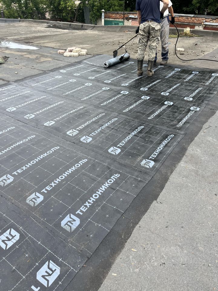 Новая кровля гибкая в 2 слоя. (Техноэласт верхний слой, нижний унифлнкс)