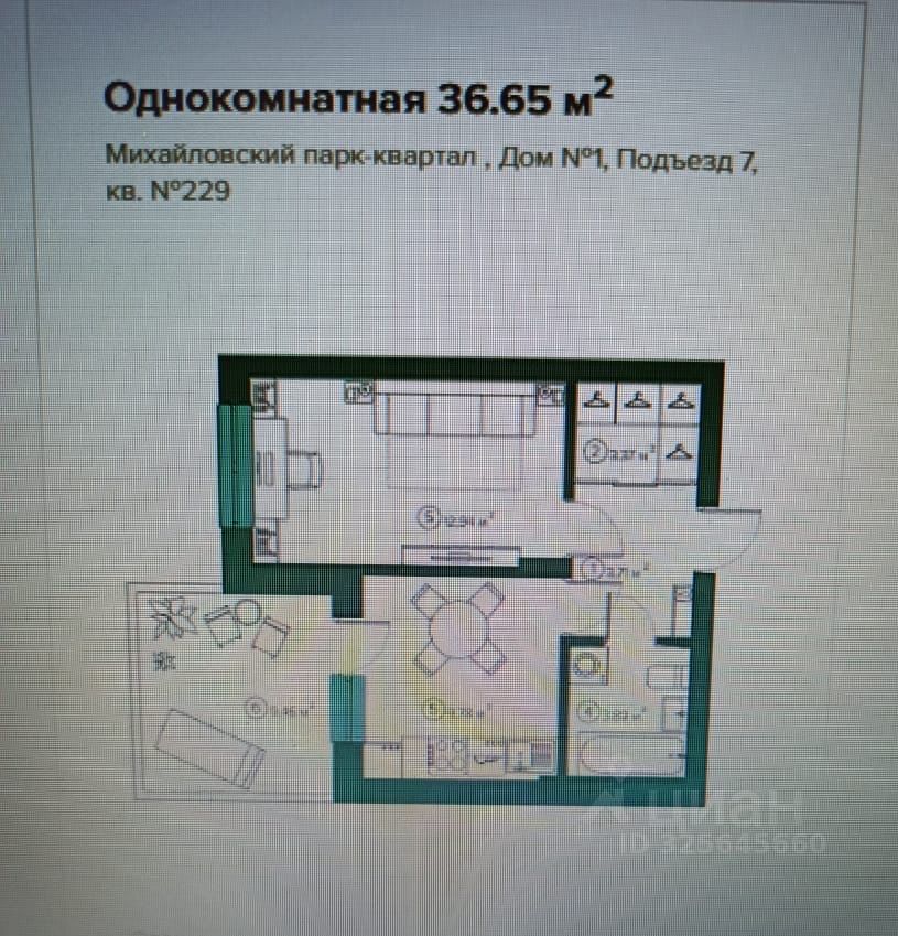 Общая площадь36,65 м2