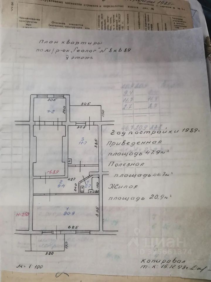 Жилая комната: 20,9 м² Коридор: 9,4 м² Кухня: 11,7 м² Ванная: 2,7 м² Балкон на кухне: 4,6 м² Балкон в комнате: 4,6 м² Сушилка на лестничной площадке: 3,6 м²