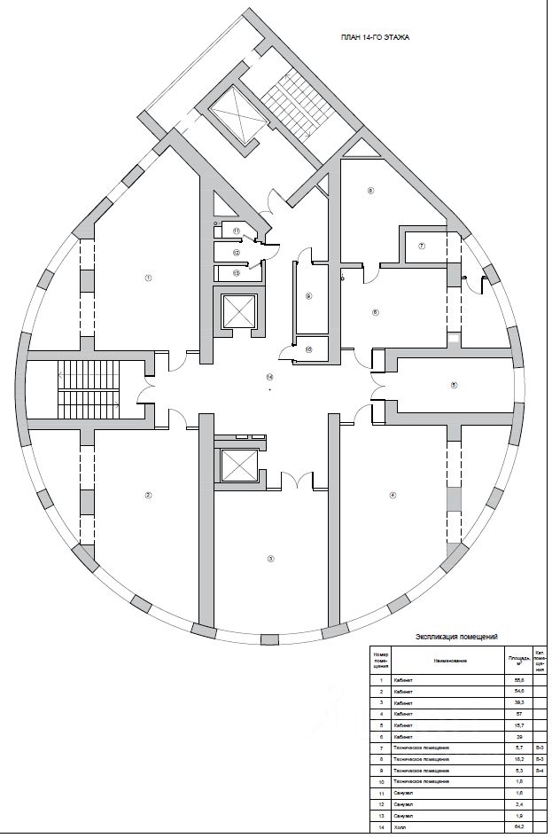 Предлагаемая площадь находится на четырех этажах: 8, 9, 14, 15. Возможна поэтажная аренда.