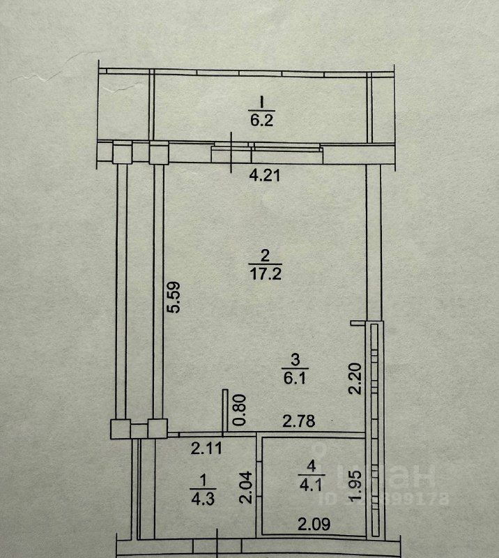 Продается квартира-студия общей площадью 37,9 кв.м.