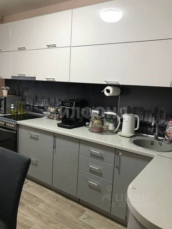 В квартире остаются три шкафа-купе, что обеспечит вам достаточно места для хранения вещей. Кухня оборудована всем необходимым: вытяжка, электроплита, посудомойка и кухонный стол. В зале также остается диван.