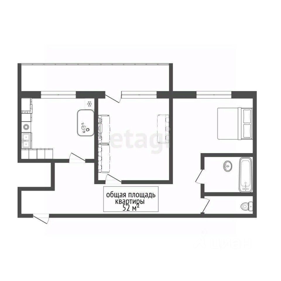 Общая площадь52,1 м2