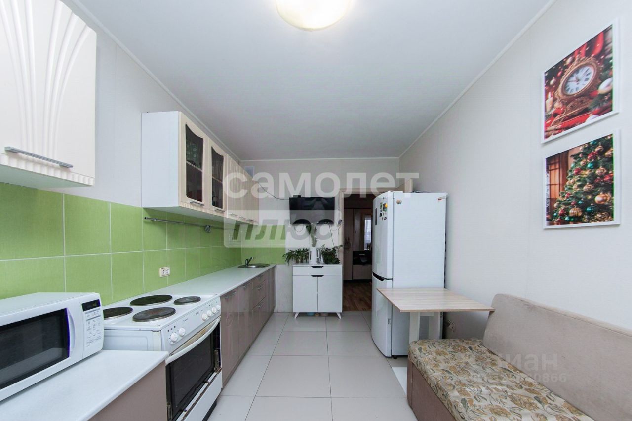 Просторная и светлая квартира на 10-м этаже общей площадью 46.9 кв.м. Комната 19.7 м, кухня 11.6 м. -Везде натянут натяжной потолок, -Установлены новые двери и пластиковые окна, -Напольное покрытие в квартире ламинат, -В кухонной зоне выполнен монтаж керамической плитки в качестве напольного покрытия и установлен кухонный гарнитур, -Санузел выложен кафелем.