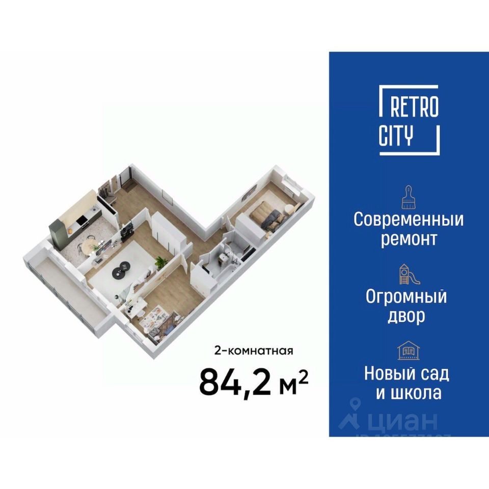 Продаётся 3-комнатная квартира в сданном доме (RETROcity), срок сдачи: IV-кв. 2024, общей площадью 84.1 кв.м., на 6 этаже. Новый жилой комплекс ''RETROcity (РЕТРОсити)'' от застройщика ''Сибирские звёзды'' расположен по адресу г. Томск ул. Иркутский тракт, 185Б.
