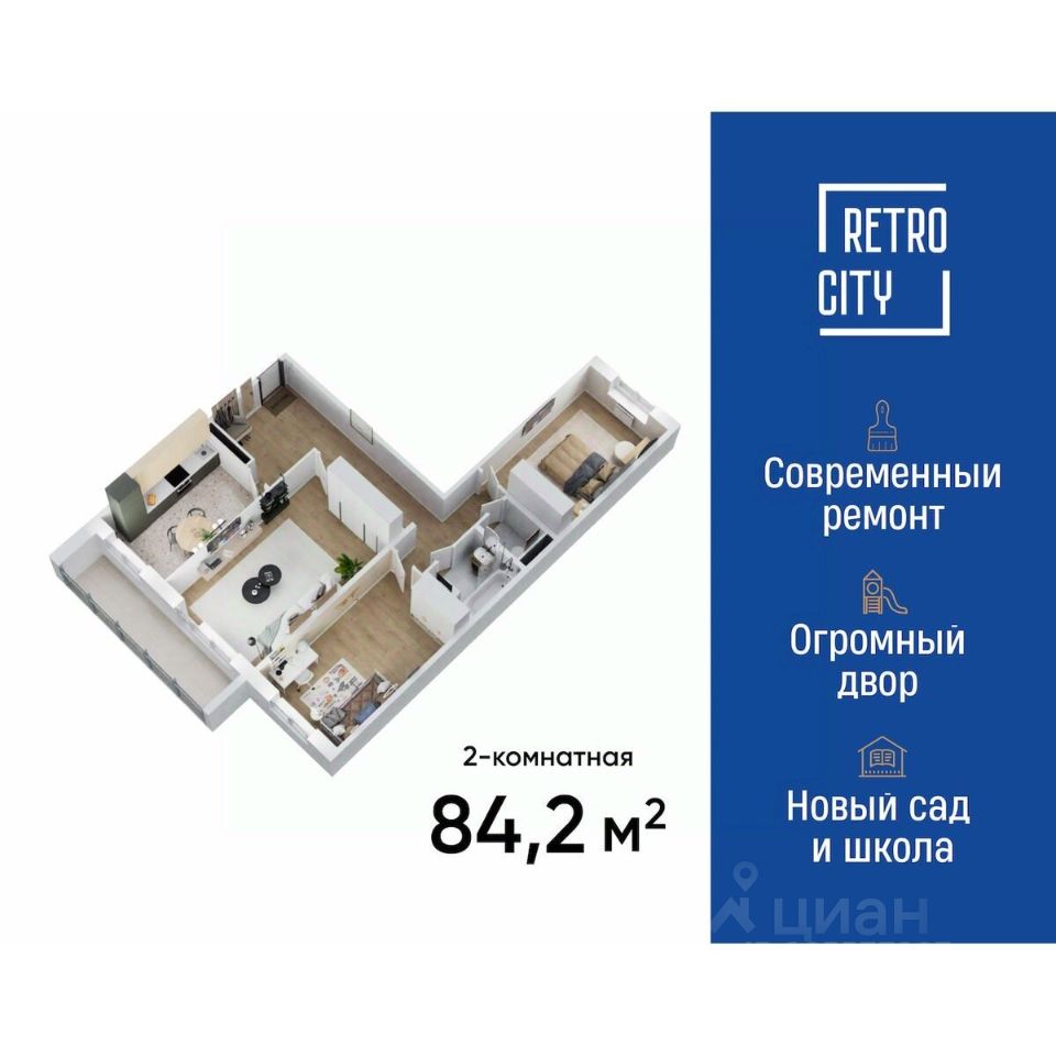 Продаётся 3-комнатная квартира в сданном доме (RETROcity), срок сдачи: IV-кв. 2024, общей площадью 84.1 кв.м., на 13 этаже. Новый жилой комплекс ''RETROcity (РЕТРОсити)'' от застройщика ''Сибирские звёзды'' расположен по адресу г. Томск ул. Иркутский тракт, 185Б.