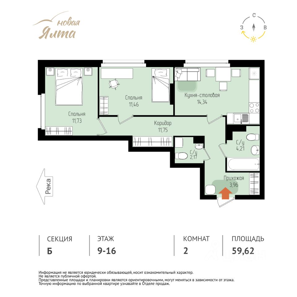 Общая площадь59,62 м2
