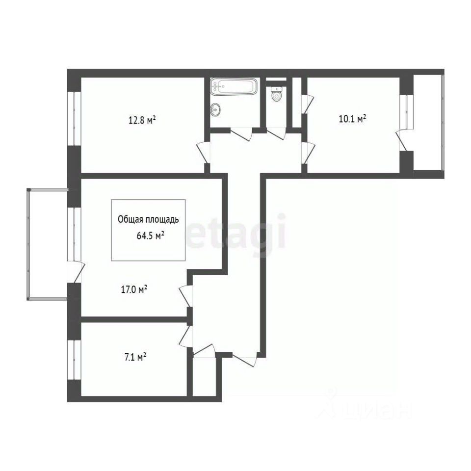 Общая площадь64,5 м2