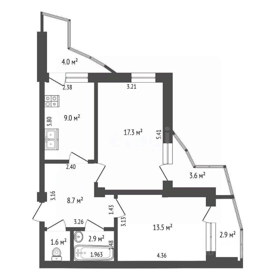 Общая площадь53 м2