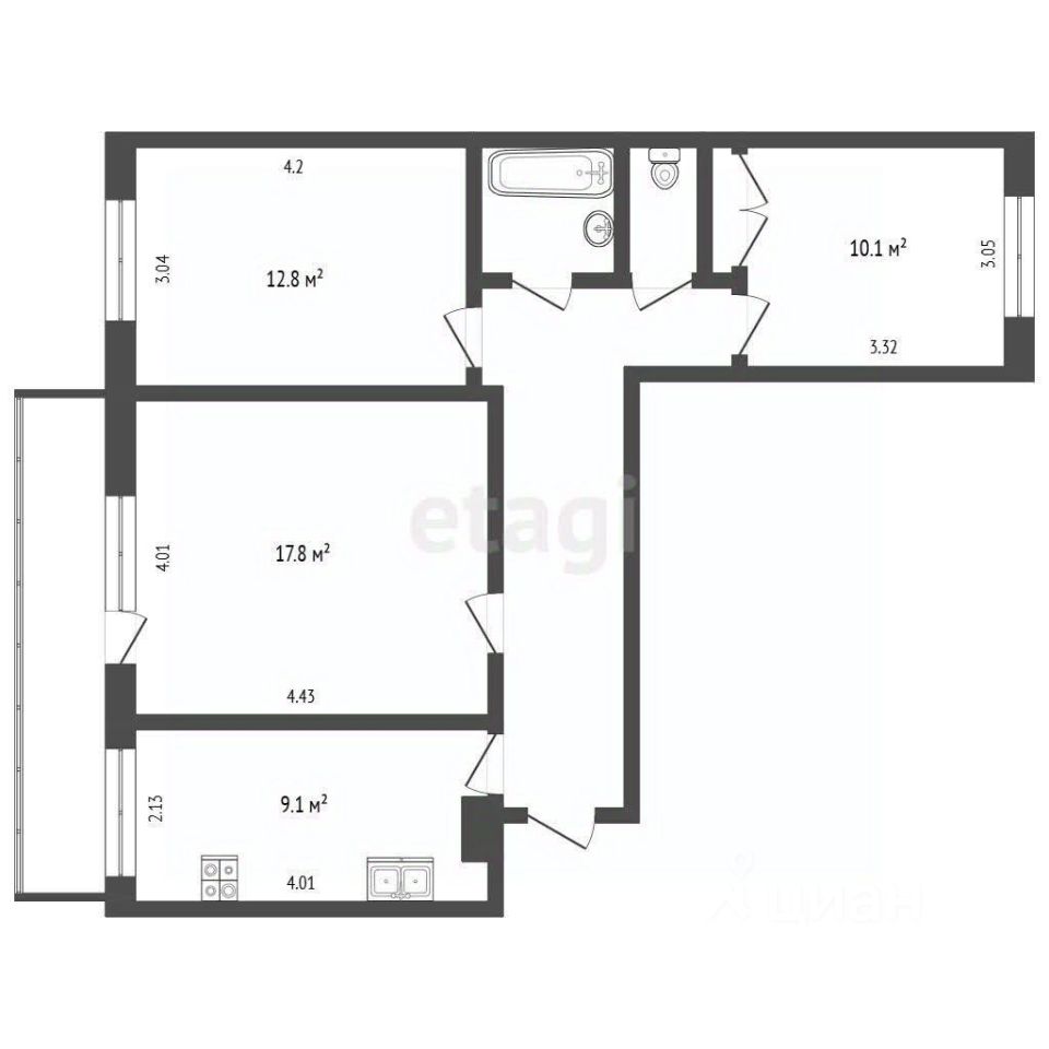 Общая площадь65,8 м2