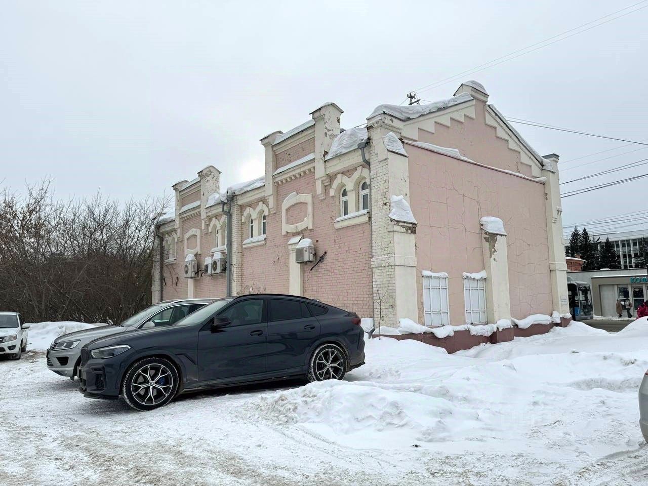 Большая парковка за зданием.
