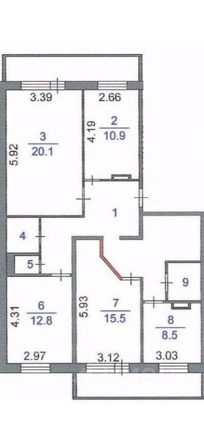 Жилая площадь56,9 м2