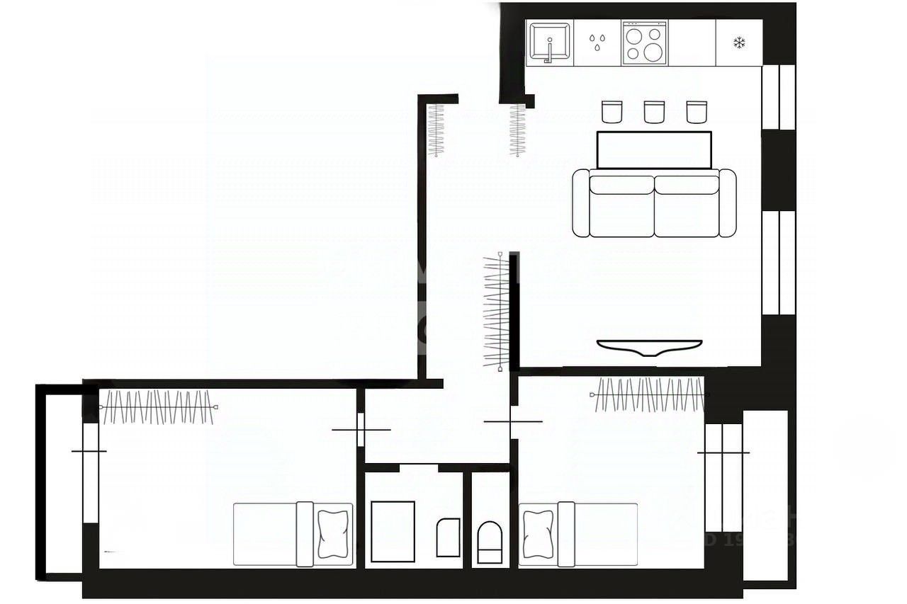Про квартиру: Распашная планировка, кухня и гостиная объединены в единую просторную комнату. Квартира общей площадью 60 кв.м. с окнами на запад и восток. На комфортном среднем 5 этаже. Кухня - гостиная - 25 кв.м. Спальня - 10 кв.м. с лоджией Спальня - 11 кв.м. с лоджией Сан узел раздельный Прихожая отдельно выделена